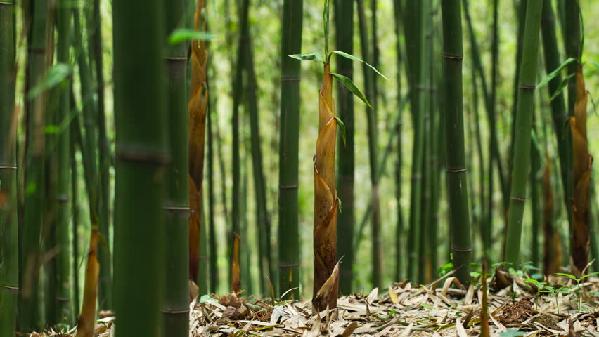 Bamboo shoots begin to appear above the